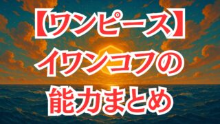 ONE PIECE【ワンピース】イワンコフの能力を徹底解説!ホルホルの実の効果と技一覧 『ワンピース』に登場する革命軍の幹部・エンポリオ・イワンコフは、強烈な個性と驚異的な能力を持つキャラクターです。彼が食べた悪魔の実は「ホルホルの実」。性別を変える、傷を治すなど、人間の“ホルモン”を自在に操るという異色の能力です。この記事で... 2025.10.20ONE PIECE