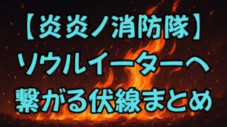 炎炎ノ消防隊【炎炎ノ消防隊】考察|ソウルイーターと繋がっている?世界線&伏線解説 『炎炎ノ消防隊』と『ソウルイーター』は繋がっている?最終回「NEXT IS SOUL WORLD」や死神・キッドの登場、笑う月などの伏線をもとに公式描写とファン考察をまとめました。 2025.10.18炎炎ノ消防隊