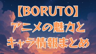 BORUTO-ボルト-【BORUTO】アニメの魅力を徹底解説!キャラクター情報と物語の見どころまとめ ボルトアニメの基本情報や主要キャラの成長、親世代との関係性を解説し、物語の見どころや魅力に迫る 2025.01.28BORUTO-ボルト-
