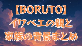 BORUTO-ボルト-【BORUTO】イワベエの親は誰?家族や背景を徹底解説! 『BORUTO』イワベエの親や家族構成を徹底考察!忍の家系説や戦争の影響、アカデミー落第の理由と今後の成長可能性を詳しく解説。 2025.02.14BORUTO-ボルト-