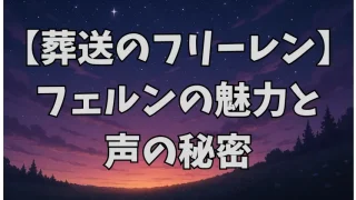 葬送のフリーレン【葬送のフリーレン】フェルンの魅力と声優・市ノ瀬加那の熱演を徹底解説! 葬送のフリーレンのフェルンと声優・市ノ瀬加那の魅力を紹介!演技のこだわりとファン評価に迫る。 2023.12.22葬送のフリーレン