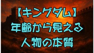 キングダム【キングダム】キャラの年齢徹底解説!王騎・摎・信・羌瘣の年齢から読み解く人物像と歴史背景 『キングダム』登場キャラの年齢を一覧で解説!王騎・信・羌瘣らの背景や成長、史実との関係から見えるドラマと人間像を徹底考察。 2024.01.13キングダム