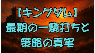 キングダム【キングダム】信vs龐煖の最終決戦|理念の衝突と成長の物語を徹底解説 『キングダム』信と龐煖の宿命の最終決戦を詳しく解説。出会いから因縁、理念の衝突、信の成長と物語への影響まで徹底考察します。 2024.01.16キングダム
