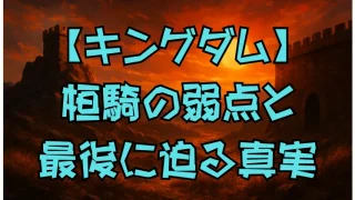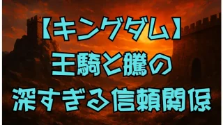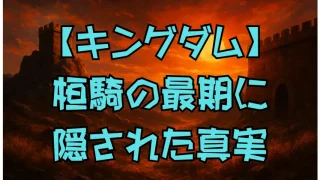 キングダム【キングダム】桓騎と扈輒の深すぎる因縁と結末|復讐・計略・心の闇を徹底考察 桓騎と扈輒の激突の裏に隠された因縁・復讐・感情を深掘り解説。鋲の意味や10万人処刑の真意、対決の結末がもたらす余韻とは。 2024.01.08キングダム